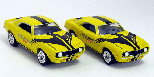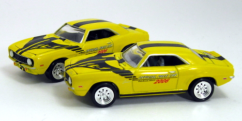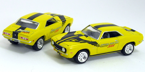 The 1969 Camaro was chosen as the 2006 Lightning Fest Pace Car. It seemed appropriate since the original Topper Johnny Lightnings were introduced in 1969 and the 1969 Chevrolet Camaro is one of the most popular and recognized automobiles ever made. These Camaros were sold in pairs with matching serial numbers, one with a gray interior and one with a black interior. Special white tired versions were available as well. | ||||||||||
